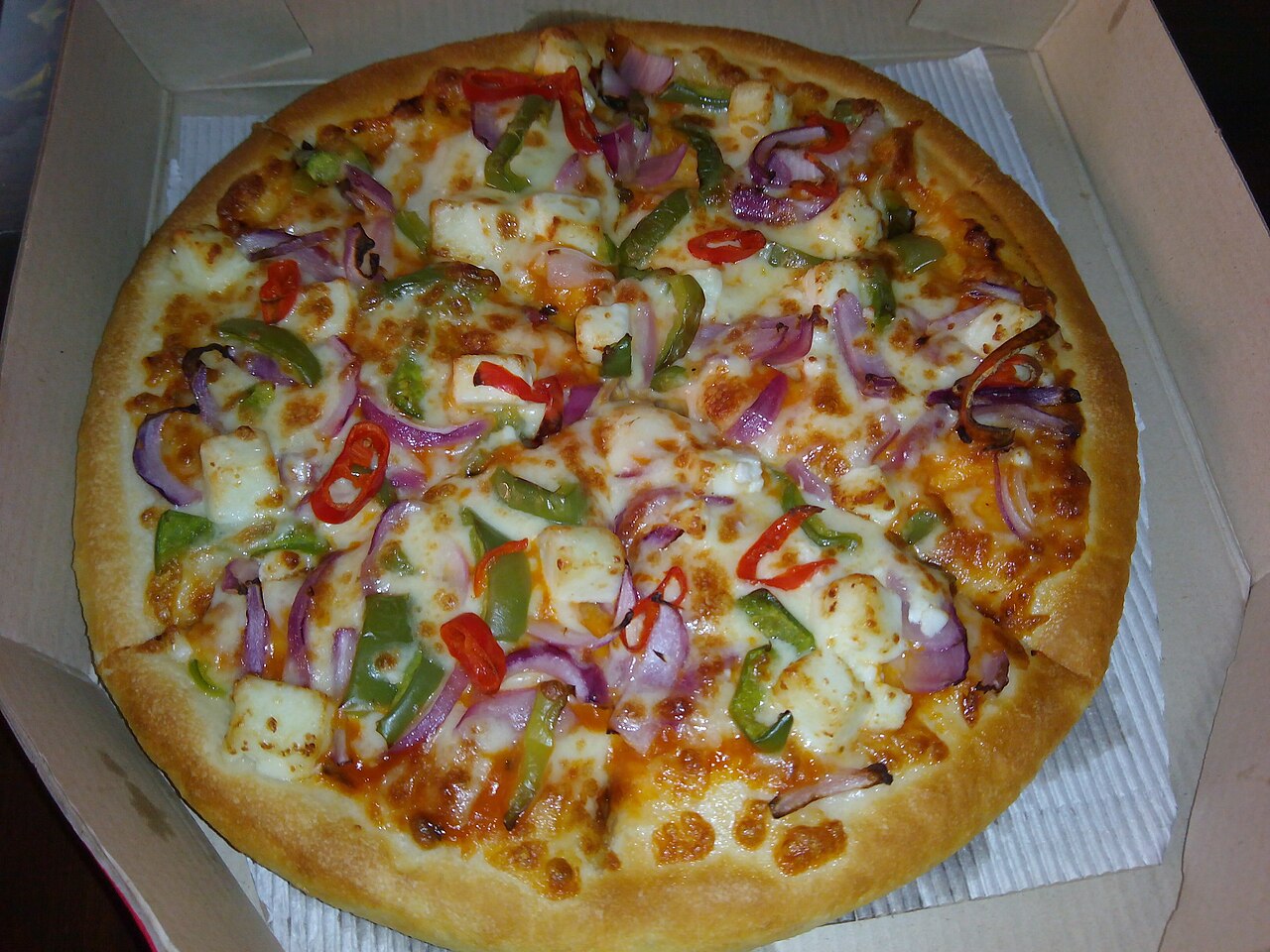 A fiery fusion of soft paneer chunks marinated in spicy peri-peri sauce, paired with fresh veggies and cheese.